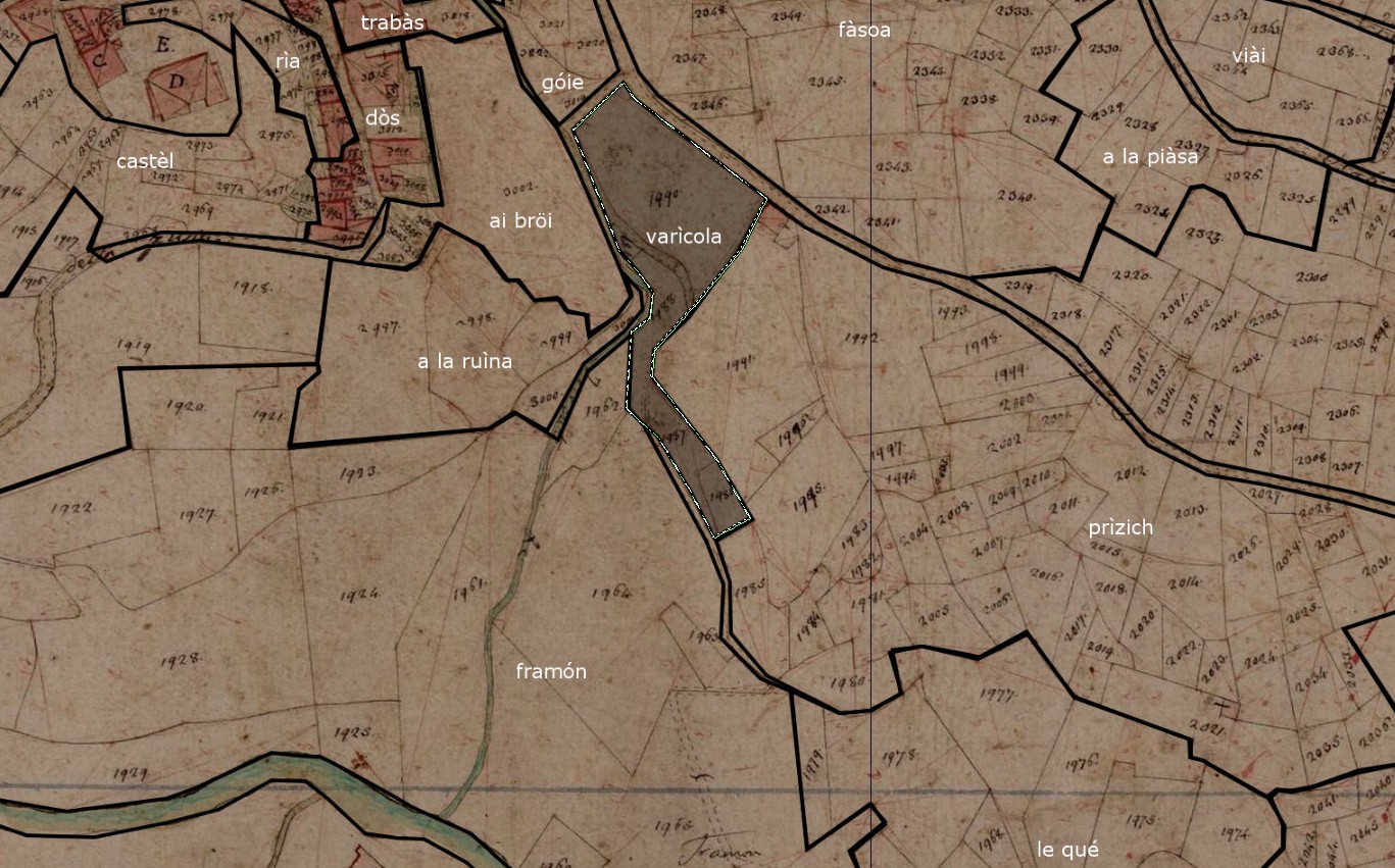 Descrizione: zona composta da un breve tratto semipiano su cui sono state costruite delle case e a ovest la costa che degrada fino all'alveo del ”ré.